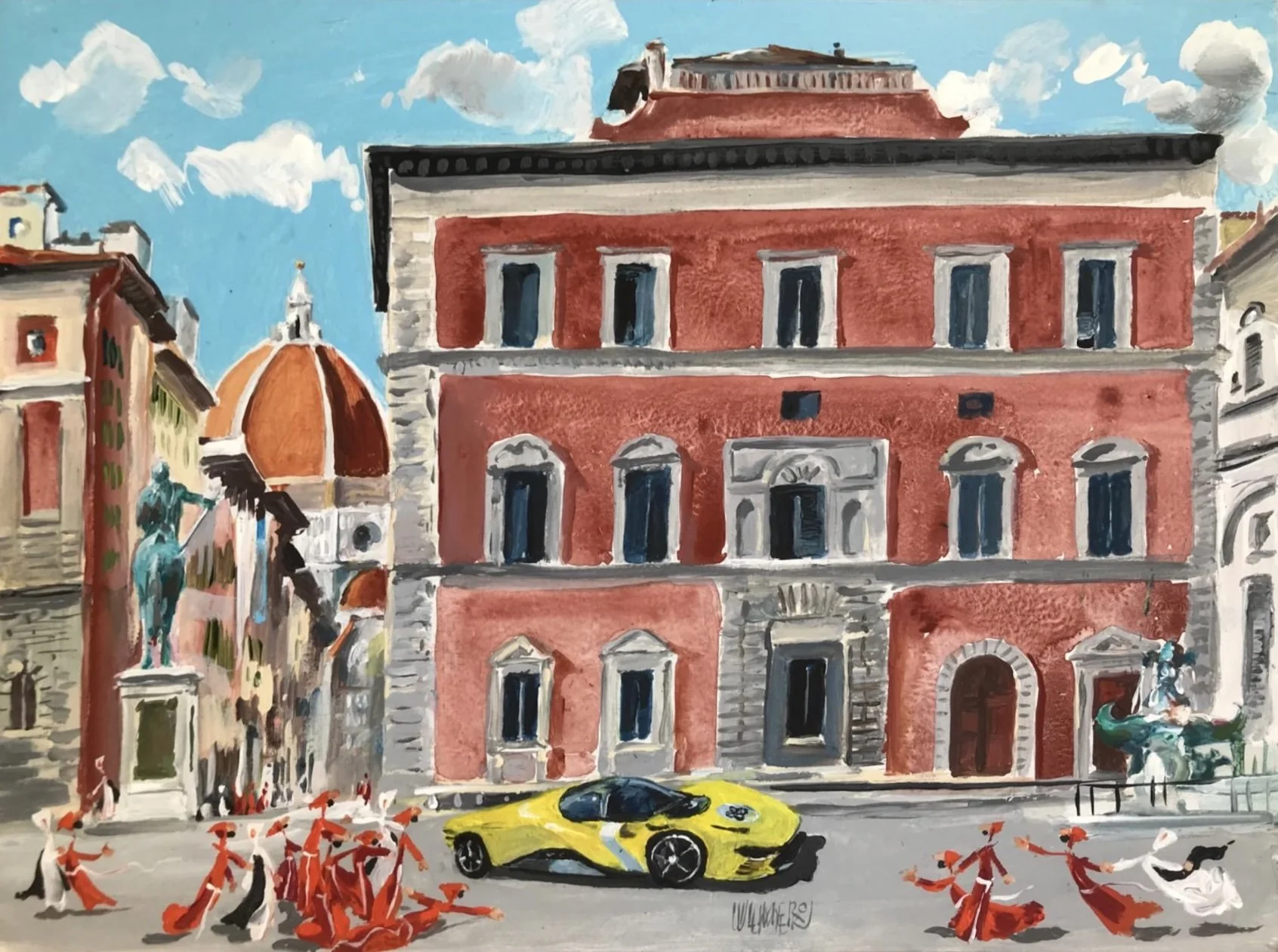 Title: “My car in Florence” Media: acrylic on wood Size: 70x100 cm - 27.5x39.4 in Private collection San Francisco CA