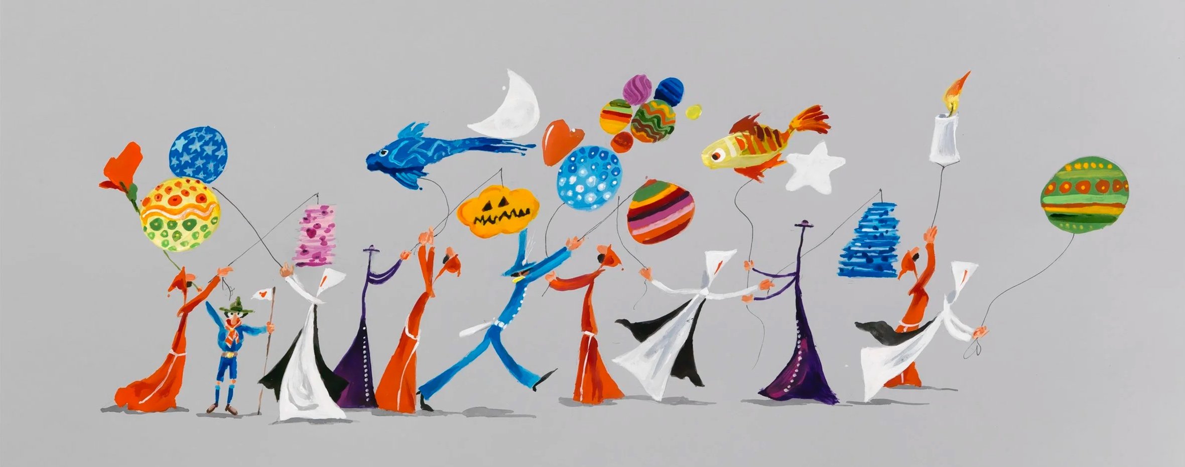 Title: “Ballando con Pulcinella” Media: acrylic on wood Size: 80x120 cm - 31.5x47.2 in Private collection California USA
